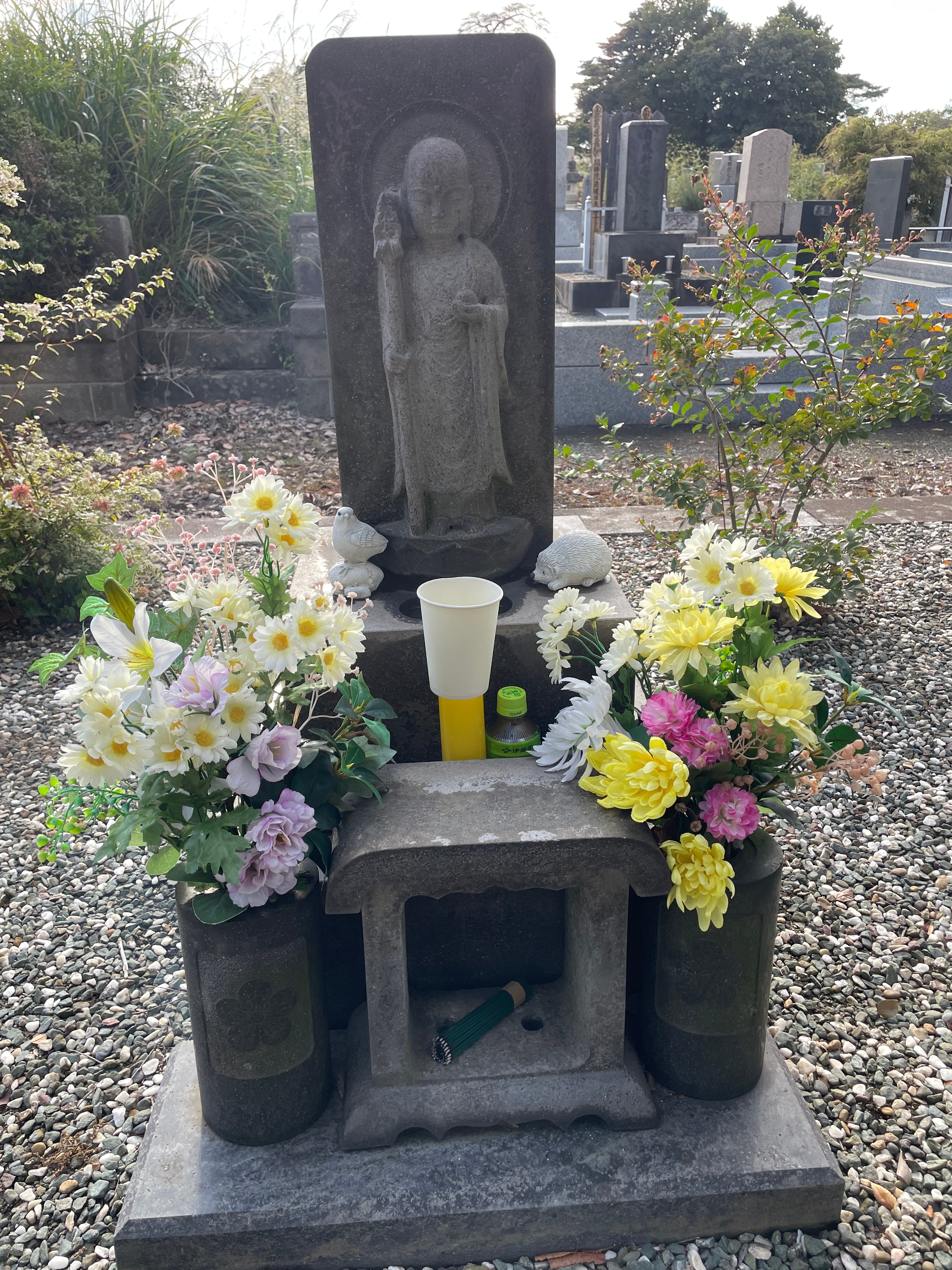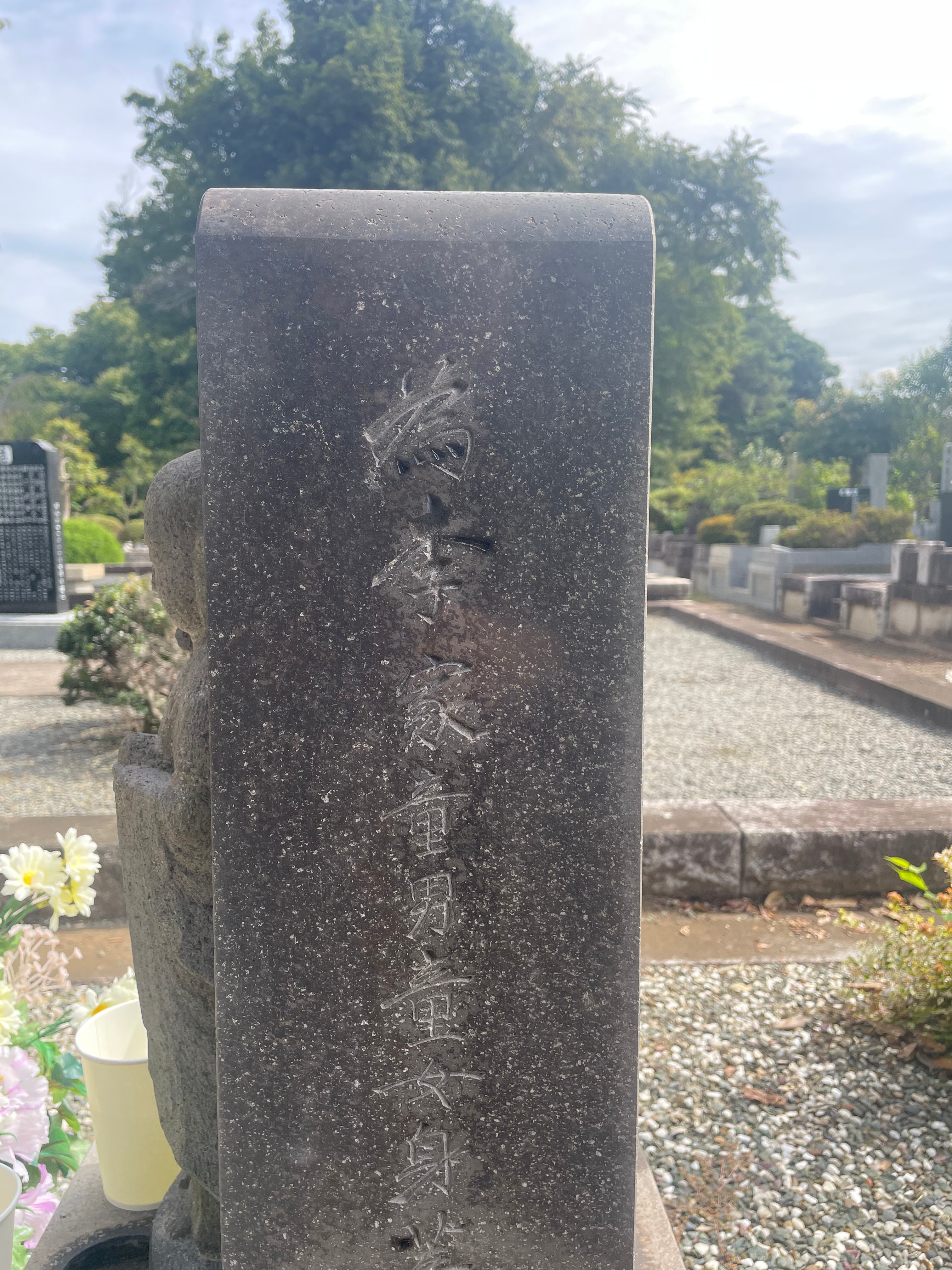 この供養塔は、1955年、祖国への帰還が叶わなかった李垠殿下により建立されたものです。また、1921年に生後8か月で亡くなれた長男・李晋殿下を供養するための地蔵を建てられており、供養地蔵には、同殿下の爪と髪の毛が奉納されております。