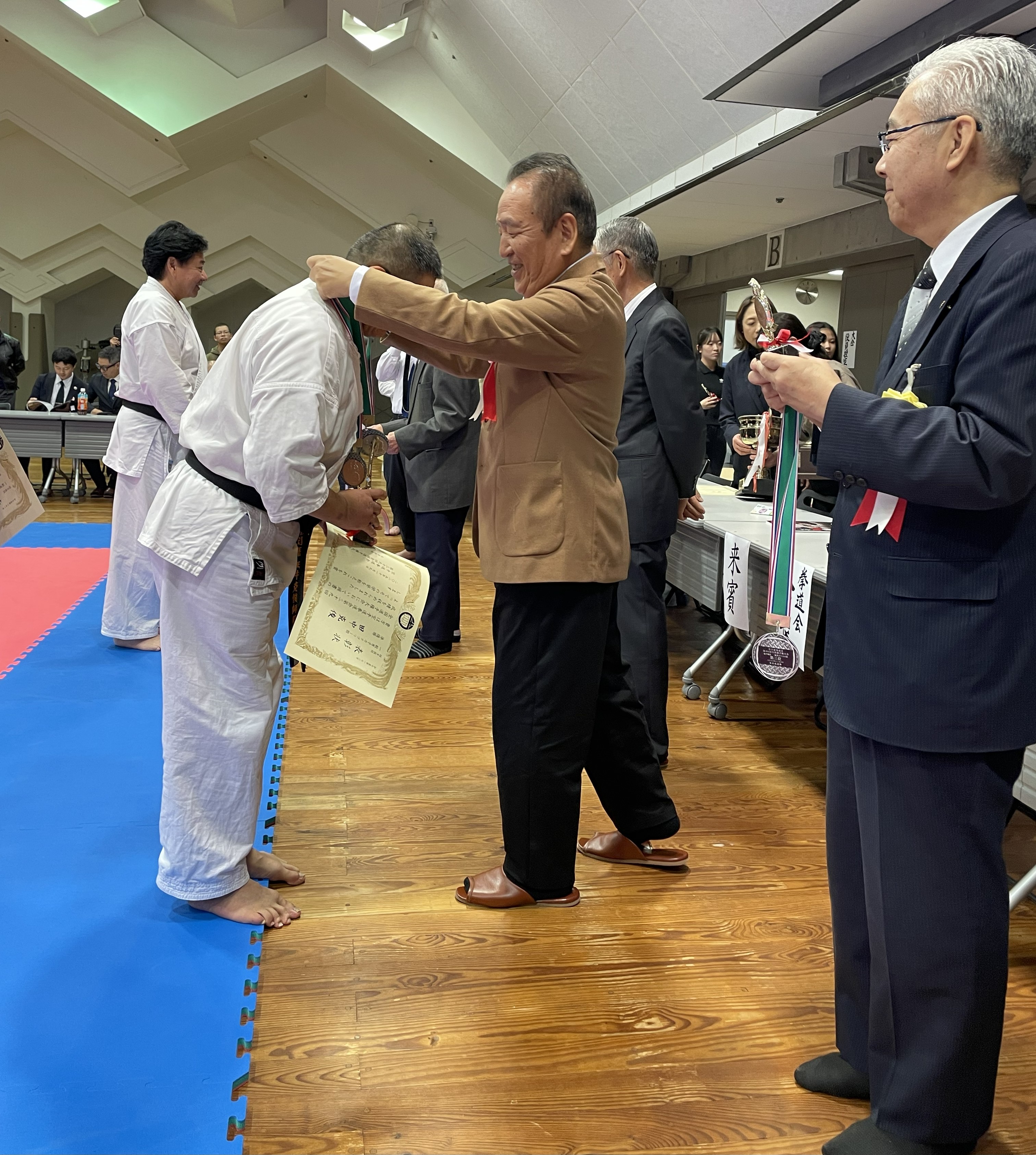 この度は、2025年11月9日に行われた「空手道拳道会第39回全国選手権大会」に来賓として招待され、「梨本宮桐華記念財団」の代表理事の梨本勇氏、筆頭理事の安志榮氏、理事の渡邊和見氏が参席されました。