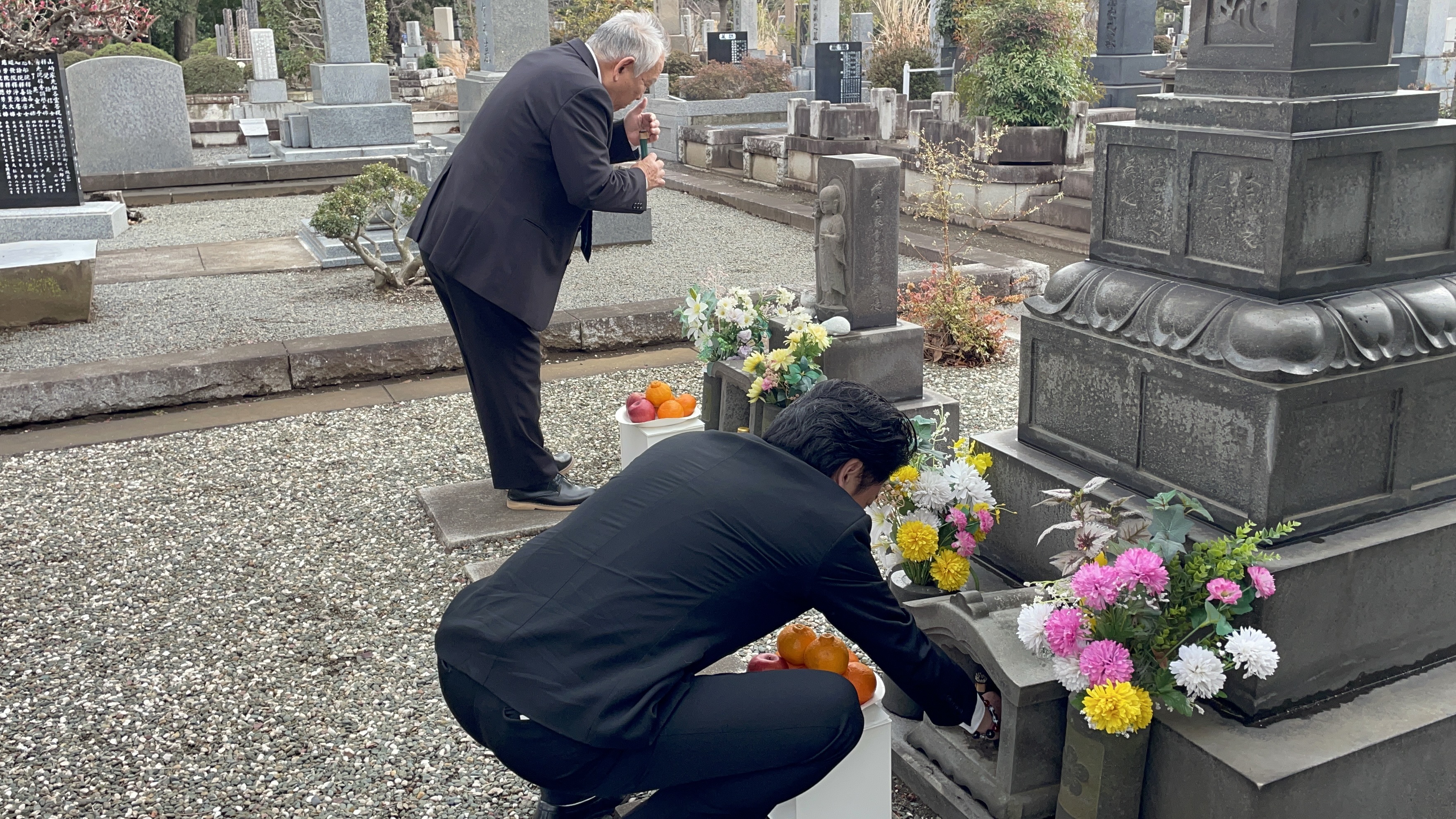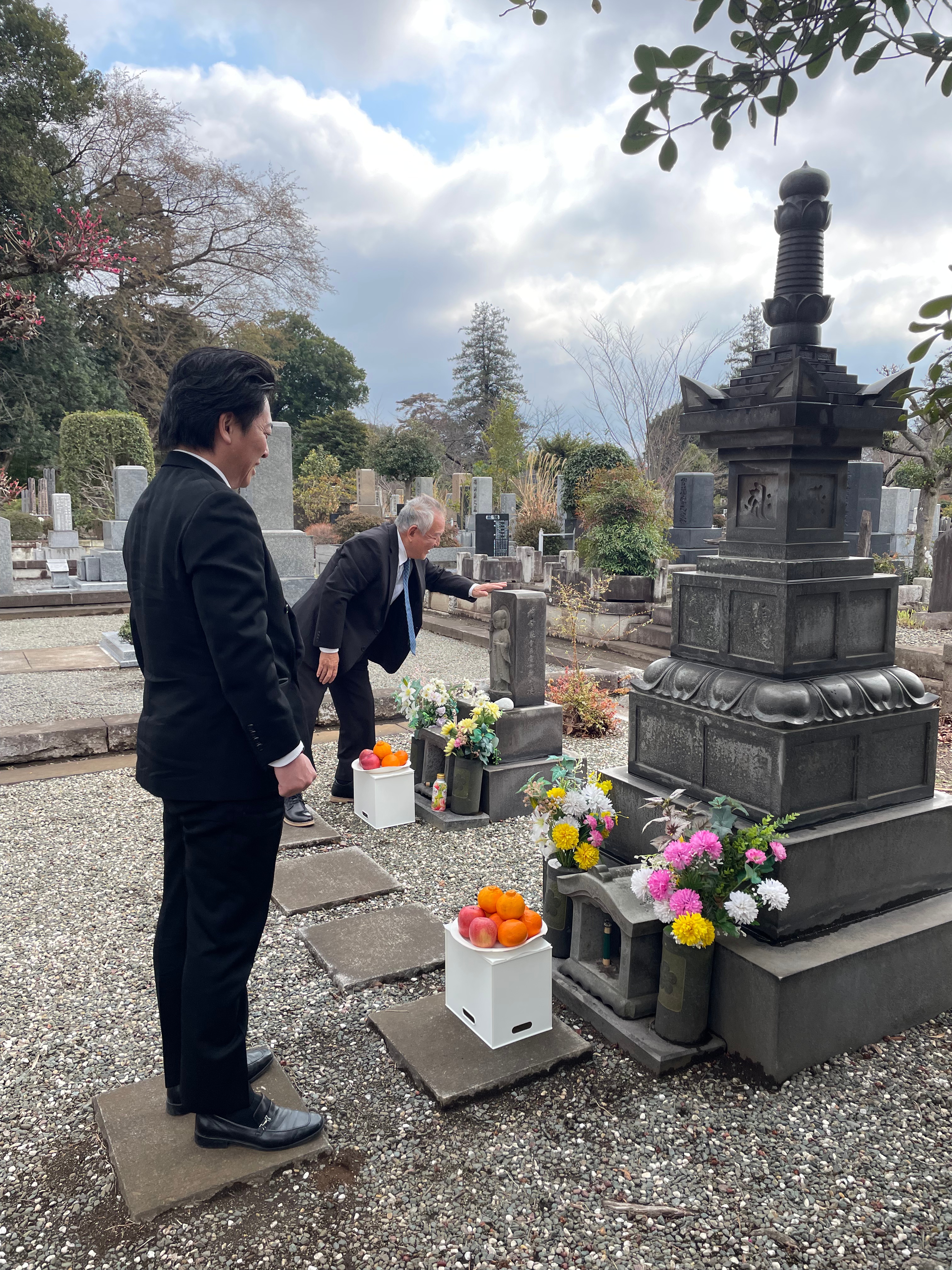 靖國神社での公式参拝を終えた後、都立多磨霊園にある李王家供養塔にて、李晋殿下並びに、李王家のご供養のための参拝が執り行われました。